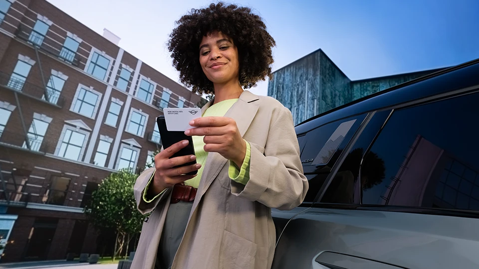 MINI Digital Key Plus, uyumlu akıllı telefonun (iOS veya Android) veya Apple Watch’un üzerinde bulunan dijital bir otomobil anahtarıdır. Cihazını cebinden çıkarmana gerek kalmadan MINI’ni güvenli ve pratik bir şekilde açıp çalıştırmanı sağlar. “Comfort Access” (SA 322) ile birlikte “Teleservices” (6AE) seçeneği olarak sunulur. “Ultra Geniş Bant” (UWB) teknolojisini kullanan MINI, MINI Digital Key Plus, otomobile yaklaştığını algılar. Yaklaşık üç metre uzaktayken, MINI uyanır ve bunu dış ve iç aydınlatma aracılığıyla hoş bir senaryo ile sinyal verir. Otomobile bindiğinde, kişisel ayarların sürücü profiline (MINI ID) yüklenir ve akıllı telefonun Bluetooth® ile bağlanır. MINI Etkileşim Ünitesi’nde kişisel olarak seni karşılayan bir karşılama ekranı görünür. MINI Uygulaması'nda etkinleştirilmiş MINI Digital Key Plus ile ek özellikler mevcuttur.